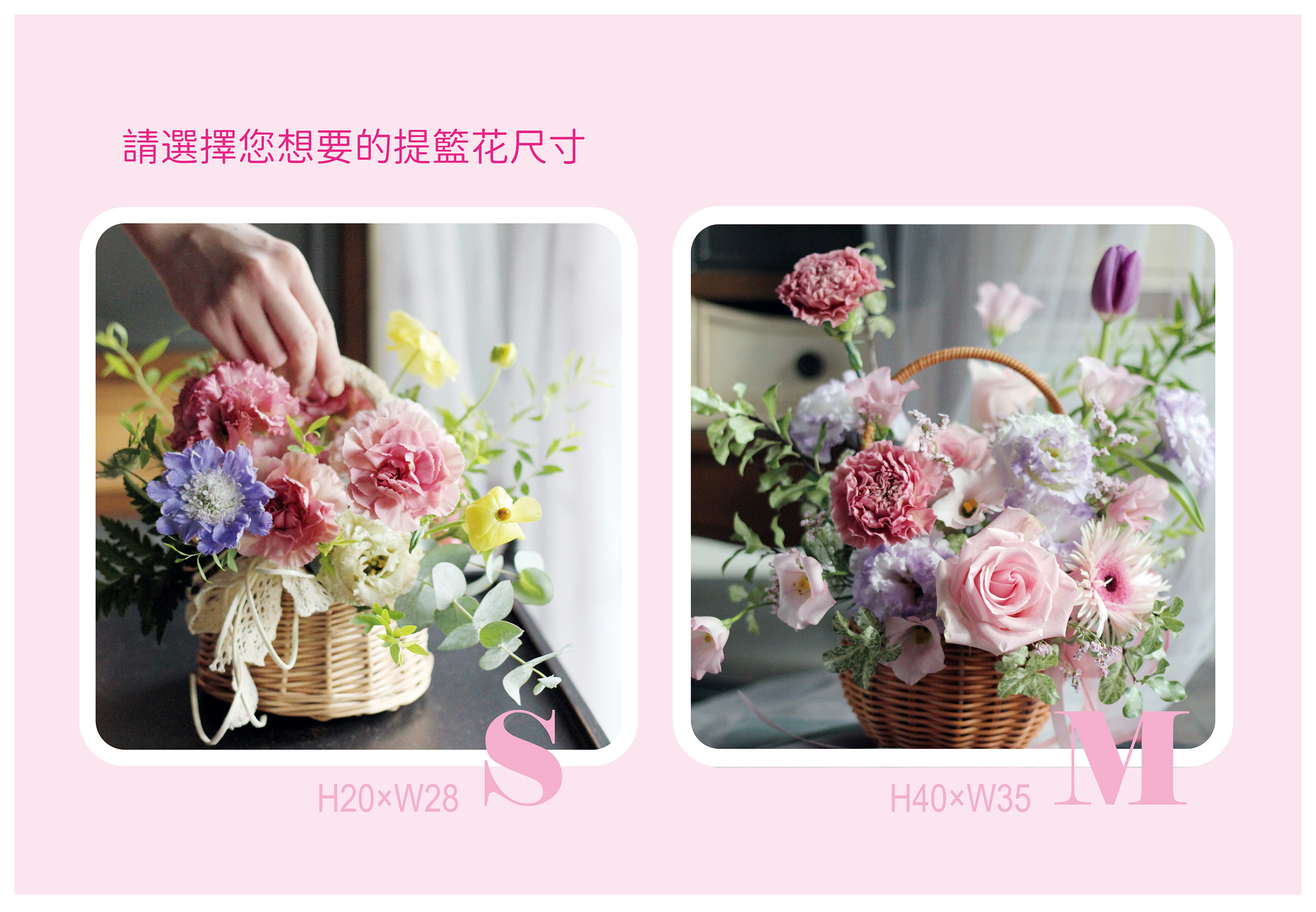 ● 材料:新鮮花材、提籃