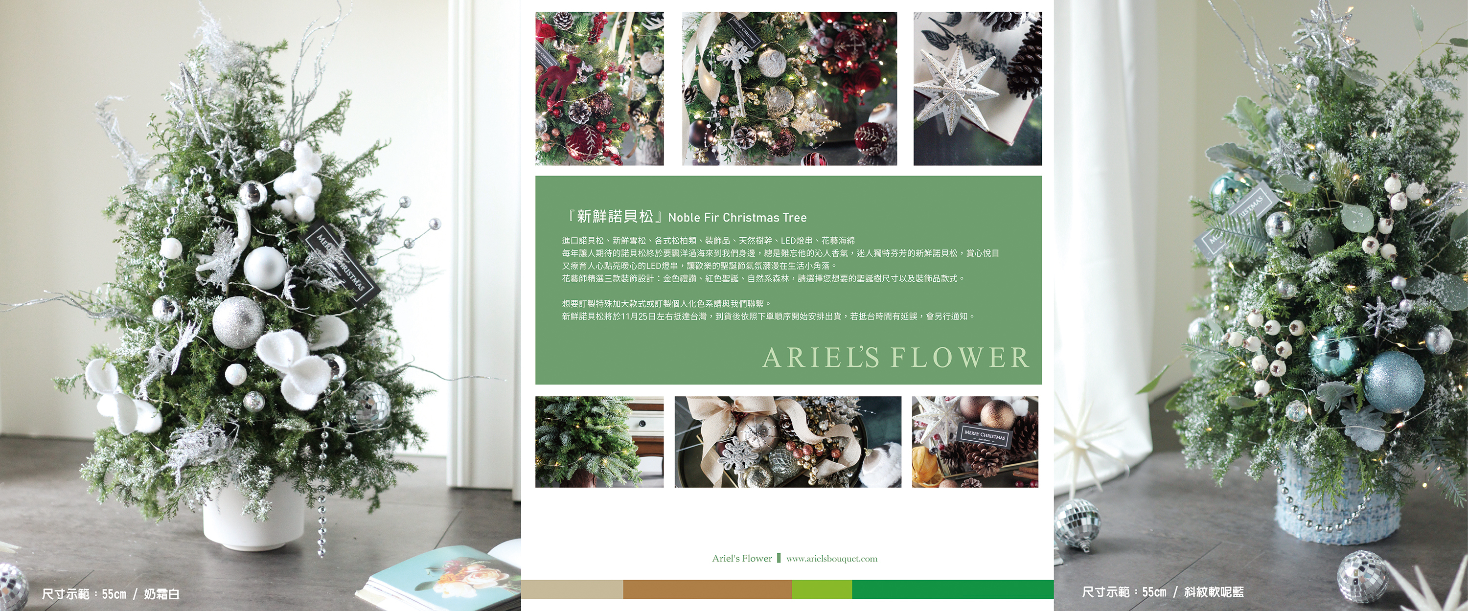 |商品介紹|新鮮諾貝松&雪松 裝飾款聖誕樹 - 奶霜白與軟呢藍