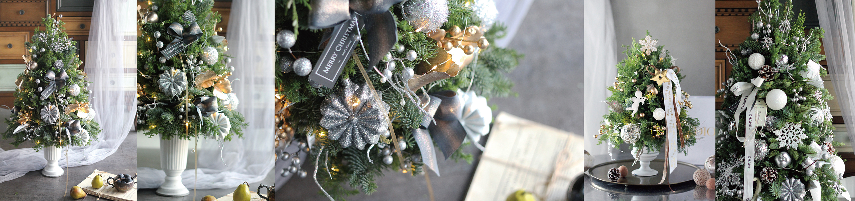 漂洋過海帶著迷人獨特芬芳的新鮮諾貝松,每年都在聖誕節陪伴著我們,賞心悅目又療育人心。在寒冷的冬季點亮暖心的LED燈串,聖誕節的氣氛瀰漫在每個生活小角落。『裝飾款諾貝松聖誕樹 - 白色古典花器』 Noble Fir&Cedar Christmas Tree 推薦給喜歡古典高腳花器的朋友,搭配銀白金色系的飾品讓聖誕樹整體呈現簡約高雅的氣質。
