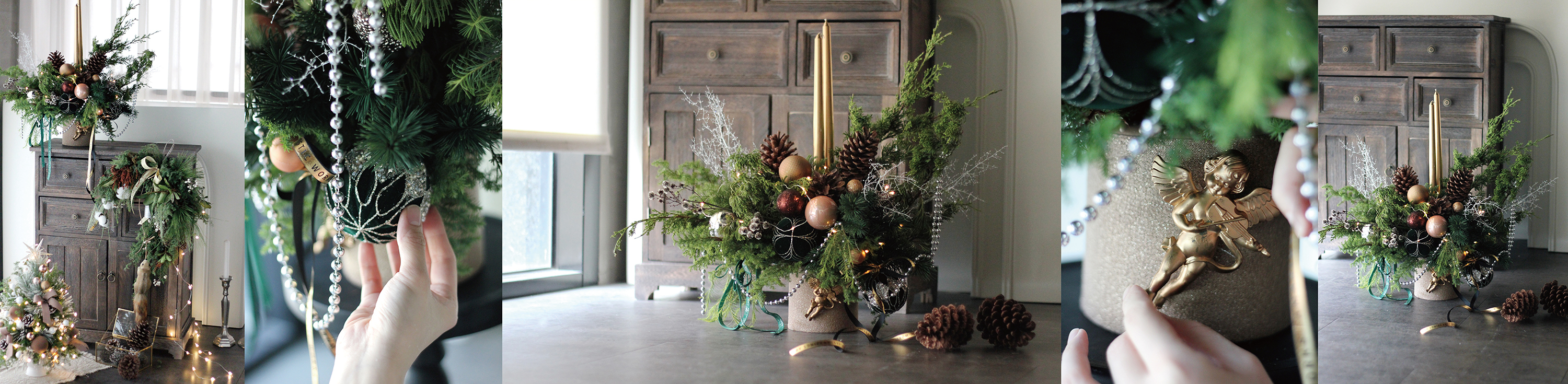 漂洋過海帶著迷人獨特芬芳的新鮮諾貝松,每年都在聖誕節陪伴著我們,賞心悅目又療育人心。在寒冷的冬季點亮暖心的LED燈串,聖誕節的氣氛瀰漫在每個生活小角落。與親人好友相聚的慶祝之夜,餐桌上必備的燭台花設計,讓諾貝松與雪松的芬芳陪您共進每一道佳餚。