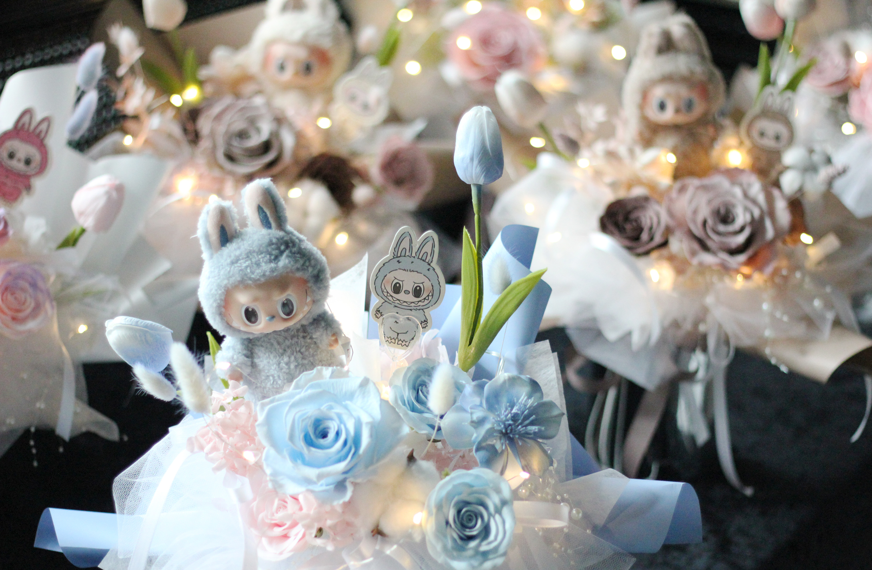 花禮設計 / 不凋花系列 / Labubu心動馬卡龍 坐坐派對 可口可樂 Crybaby / 玫瑰花束